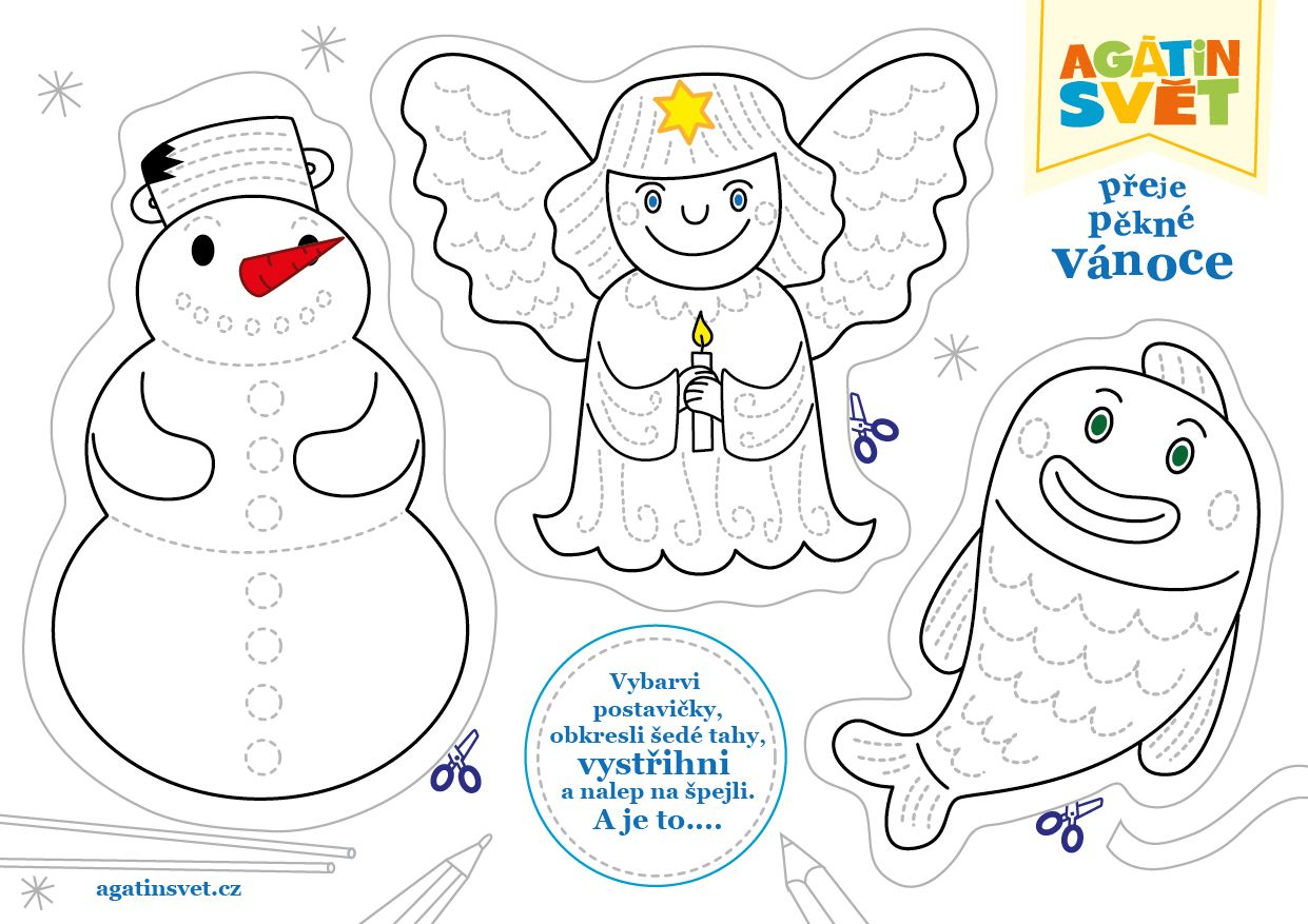 - Vánoční omalovánky ke stažení: Anděl, sněhulák a kapr | JPEG | 0.15 MB